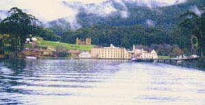 Port Arthur, the major penal colony in Tasmania, was somewhat of a disappointment, perhaps because of the great expectations for it and also perhaps because this was not our history. The siting of the penal colony on a deep and beautiful harbor, is indeed magnificent; of course the prisoners had no chance of enjoying it. Charles Dickens visited Port Arthur and modeled several of the characters in Oliver Twist after prisoners. We heard a story about a Jewish prisoner, Ikey Solomons, who was supposedly the model for Fagin. The Potato Factory is a novel based on Solomons' life. The weather during our drive to Port Arthur was rainy, but it mostly cleared by the time we arrived and yielded a spectacular rainbow just before sunset. We stayed in rather ordinary accommodations, but just outside were cattle who provided diversion and a morning concert.